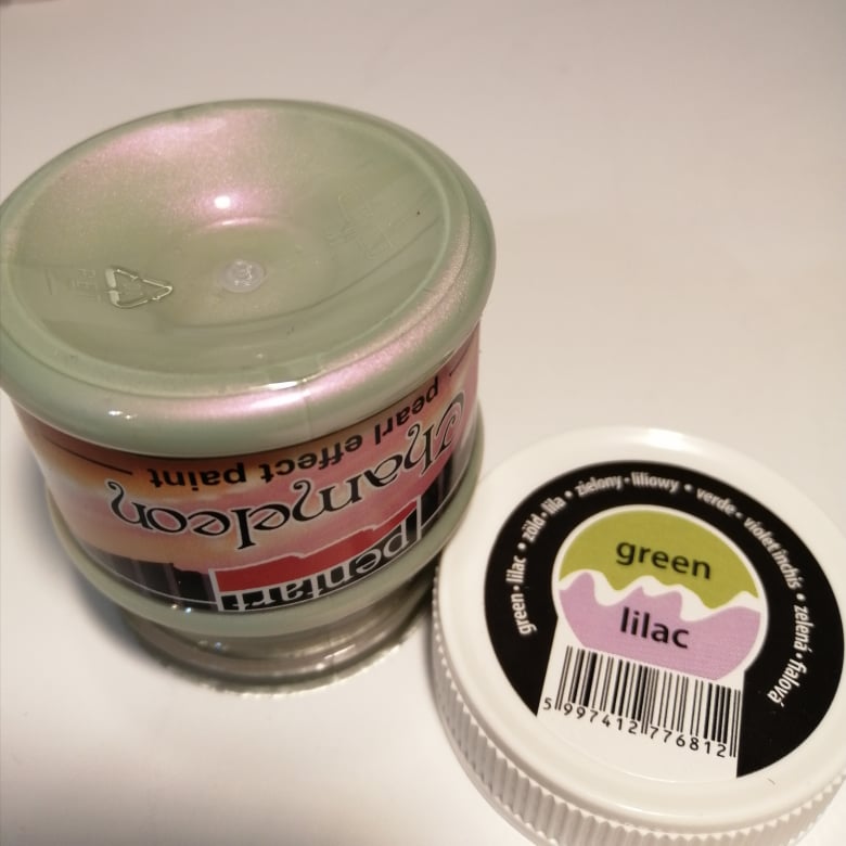 Kétszínű, gyöngyház hatású vízbázisú festék, melynek az alapszíntől eltérő színű fénye van. Különösen látványosan használható domború felületeken, ahol a festett tárgy fénye minden nézőpontból más színt mutat. A Pentart akrilfestékek nagy pigment tartalmú, kiválóan fedő, vízbázisú termékek. Vízzel hígíthatóak száradás után pedig vízálló felületet képeznek. 20 ml- es és 50 ml-es kiszerelésben kaphatóak.