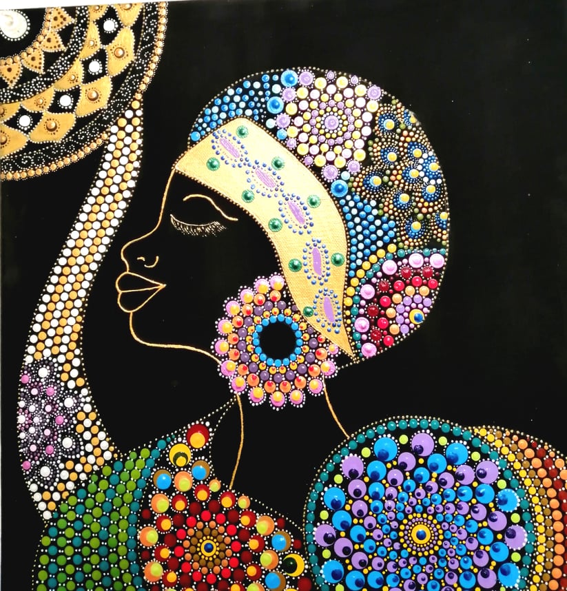 Mérete 40x40 cm, vászonra készült és festésnél minden színárnyalatot használtam, ami a kezem ügyébe került.