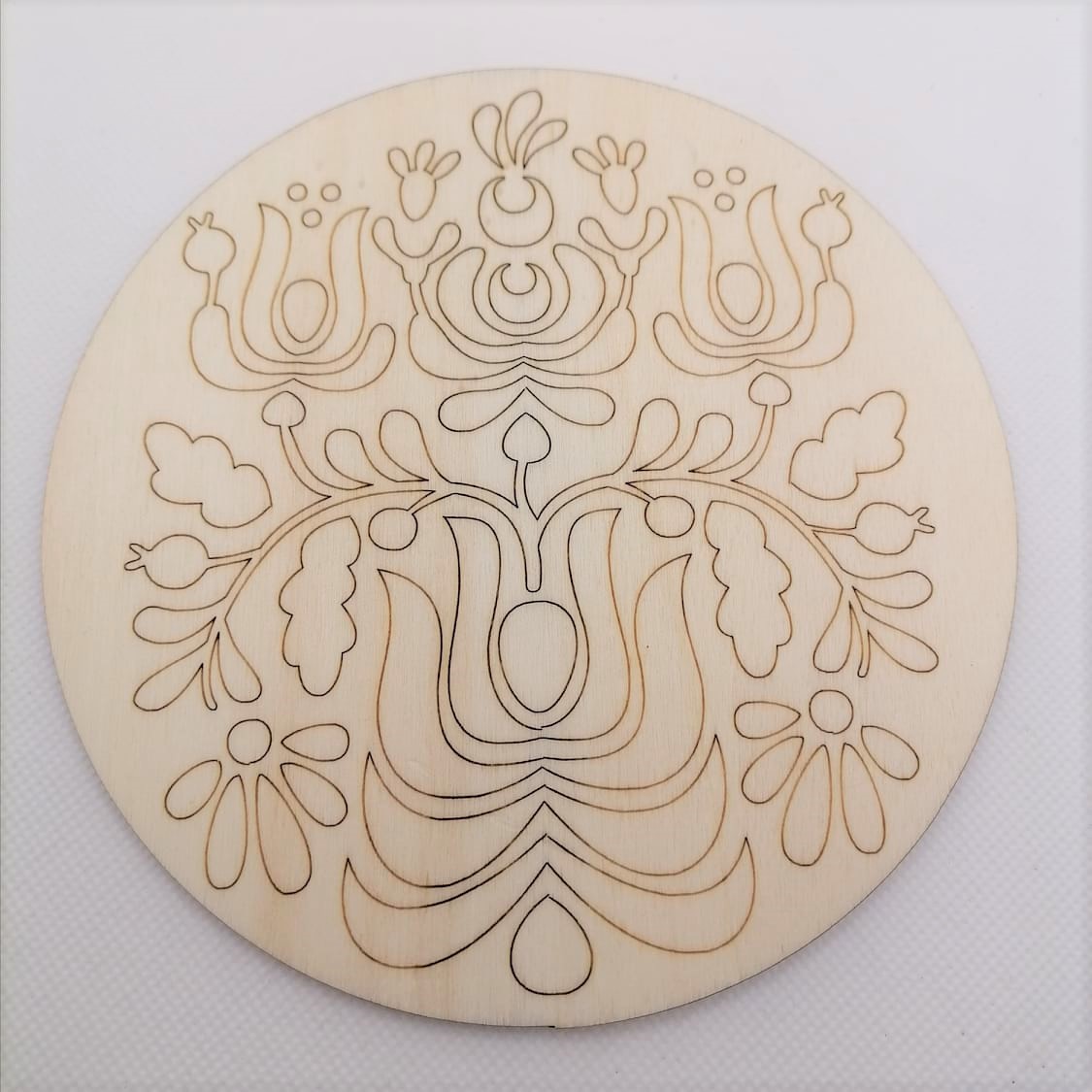 Előgravírozott fa alap, melyet akrilfestékekkel és gyöngyökkel, kristályokkal vagy gyöngyökkel is díszíthetünk.