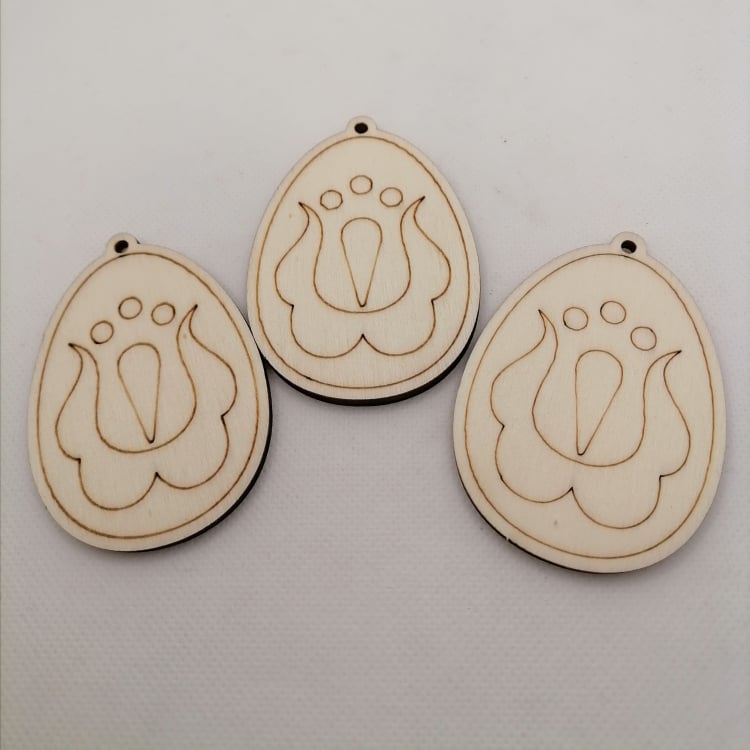 3 mm vastag rétegelt nyírfa lemezből készült felakasztható tojásdísz.