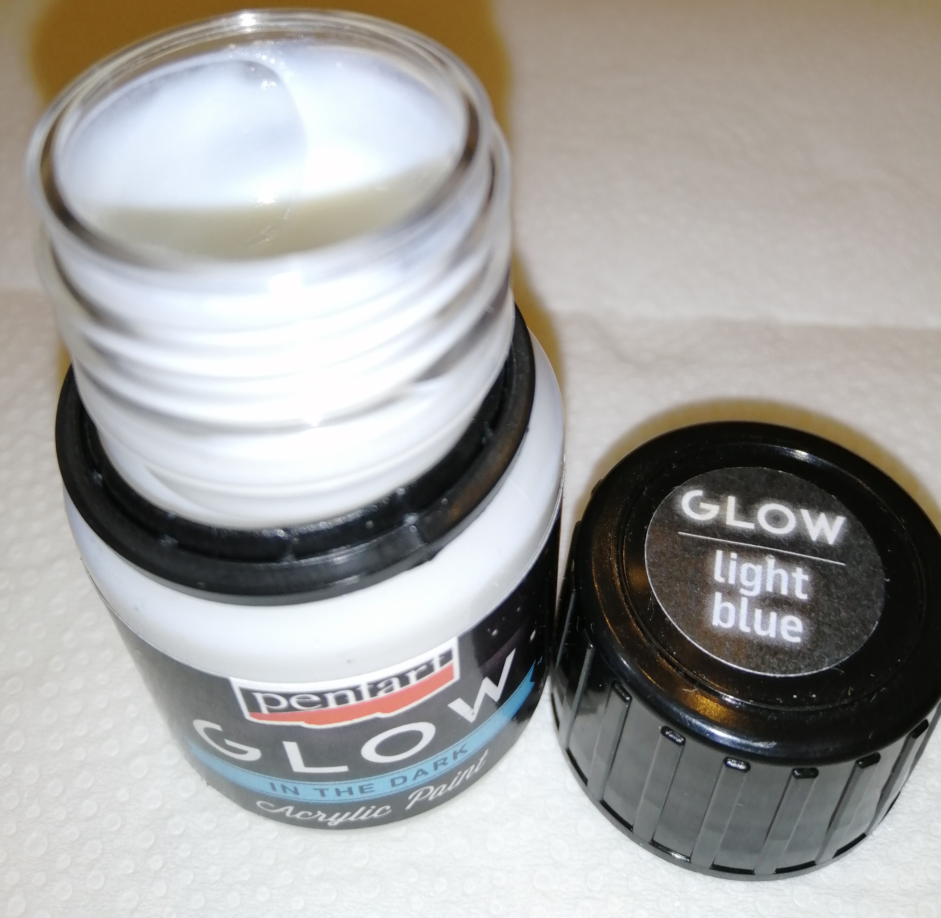 Vízbázisú, sötétben világító fehér-kék színű akrilfesték.