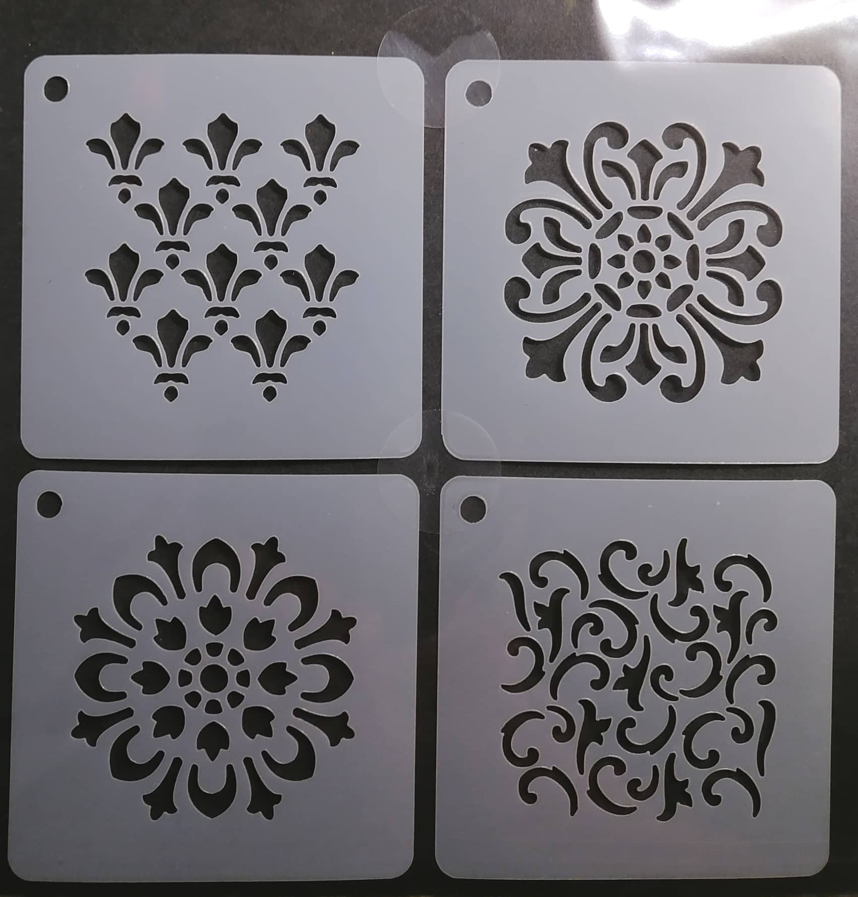 14x 14 cm-es vékony stencil , mely kiválóan alkalmas pl. textilfestéshez vagy bútorfestéshez. A kicsi stencilek mérete 6,5cm x 6,5 cm