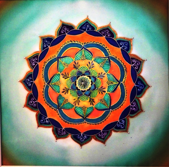 Saját tervezésű minta alapján, kézzel készült egyedi selyemkép, fehér fa keretben.
